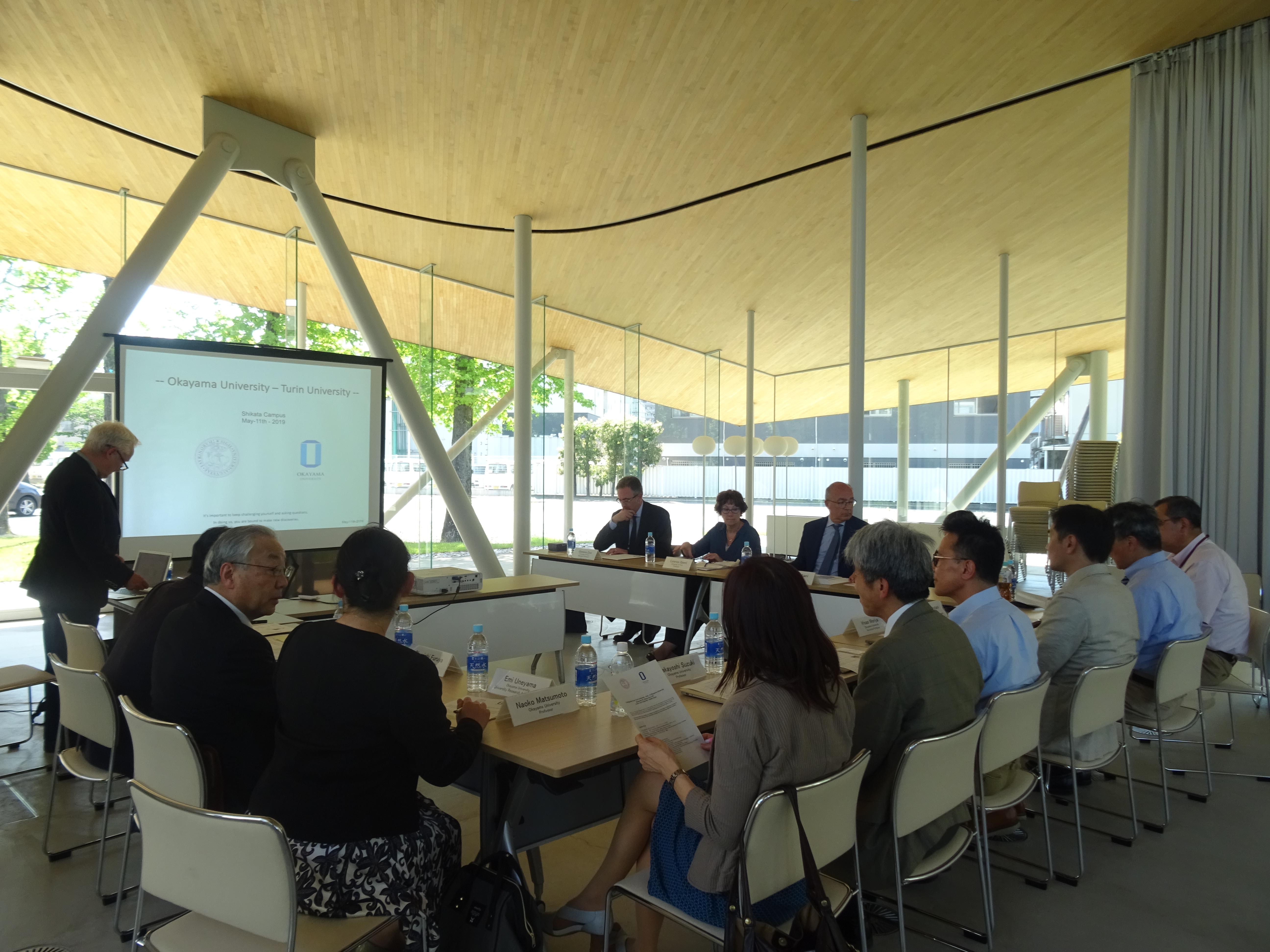 To open discussions and meeting, Prof. Y. Nasu, Executive Vice-President of Research, head of the Okayama University Delegation behalf of President H. Makino, delivered a short welcome and opening address. He emphasized Okayama University orientation to Excellence. This search includes connections with prestigious Academic Institutions and he reminded in particular a few of the prestigious scientists and writers who graduated at Turin University: Erasmus as early as 1506, Avogadro (Chemistry), Primo Levi and Umberto Eco in the field of Literature.