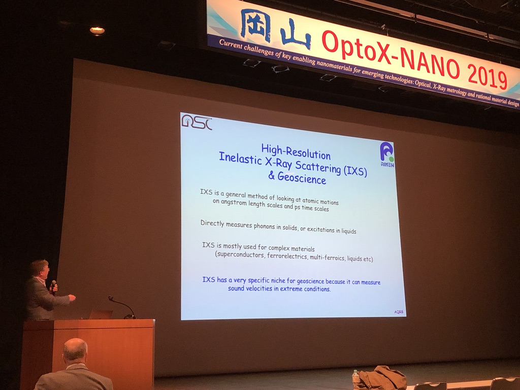 The 2019 session of “Opto-X-Nano” conference was co-organised by Okayama University, Tyndall National Institute in Cork – Ireland and Riken-SPRING8. It put together at the Okayama Convention Center, about 110 participants in several interdisciplinary fields. About 35% came from Europe or N-America. The 2019-Edition was opened by Pr. Shin Ichi Yamamoto presently Dean of Research Department at NIAD-QE and formerly Vice-President of research at Okayama University. The opening was followed by 2 plenary talks: 1 given by Pr. J. Tse from University of Saskatchewan (“Exploration of structures and electronic properties of materials under extreme conditions”) and a second one by Pr. S. Kazarian from Imperial College – London. (“Enhancing biomedical research with spectroscopic imaging”). Then 17 science sessions took place.